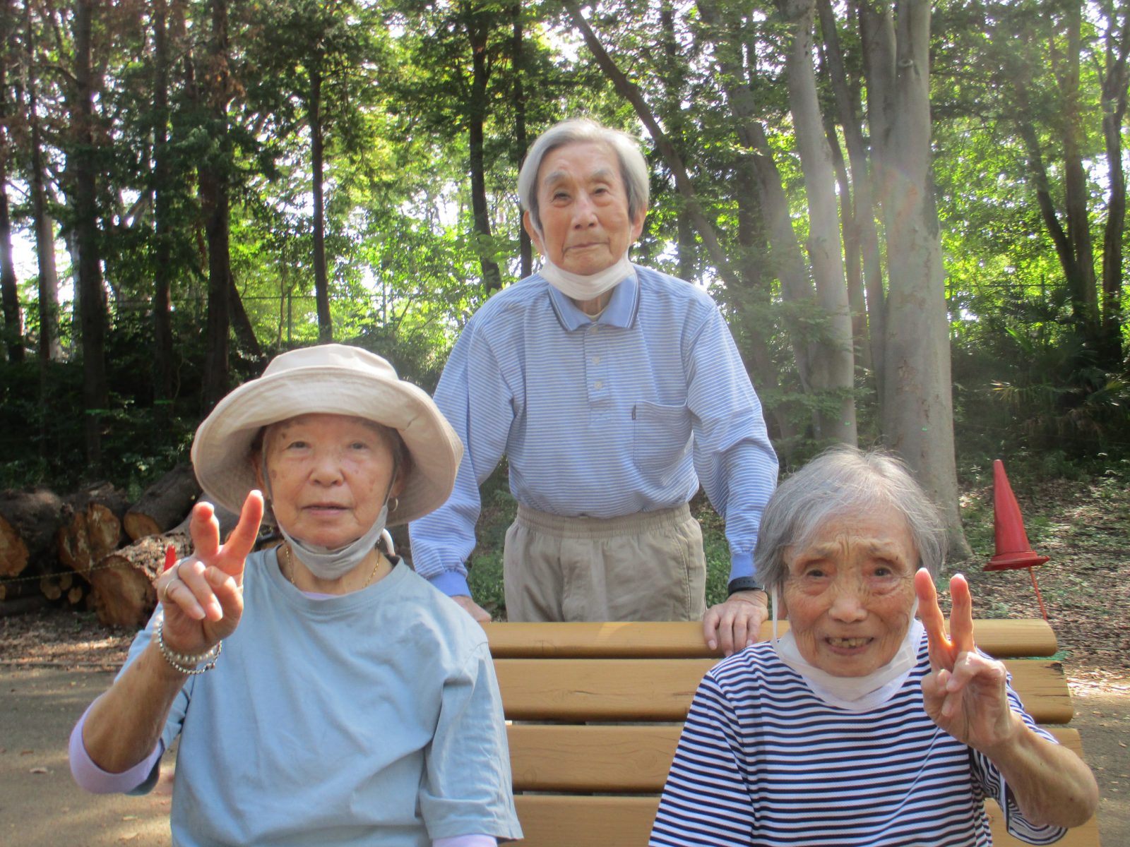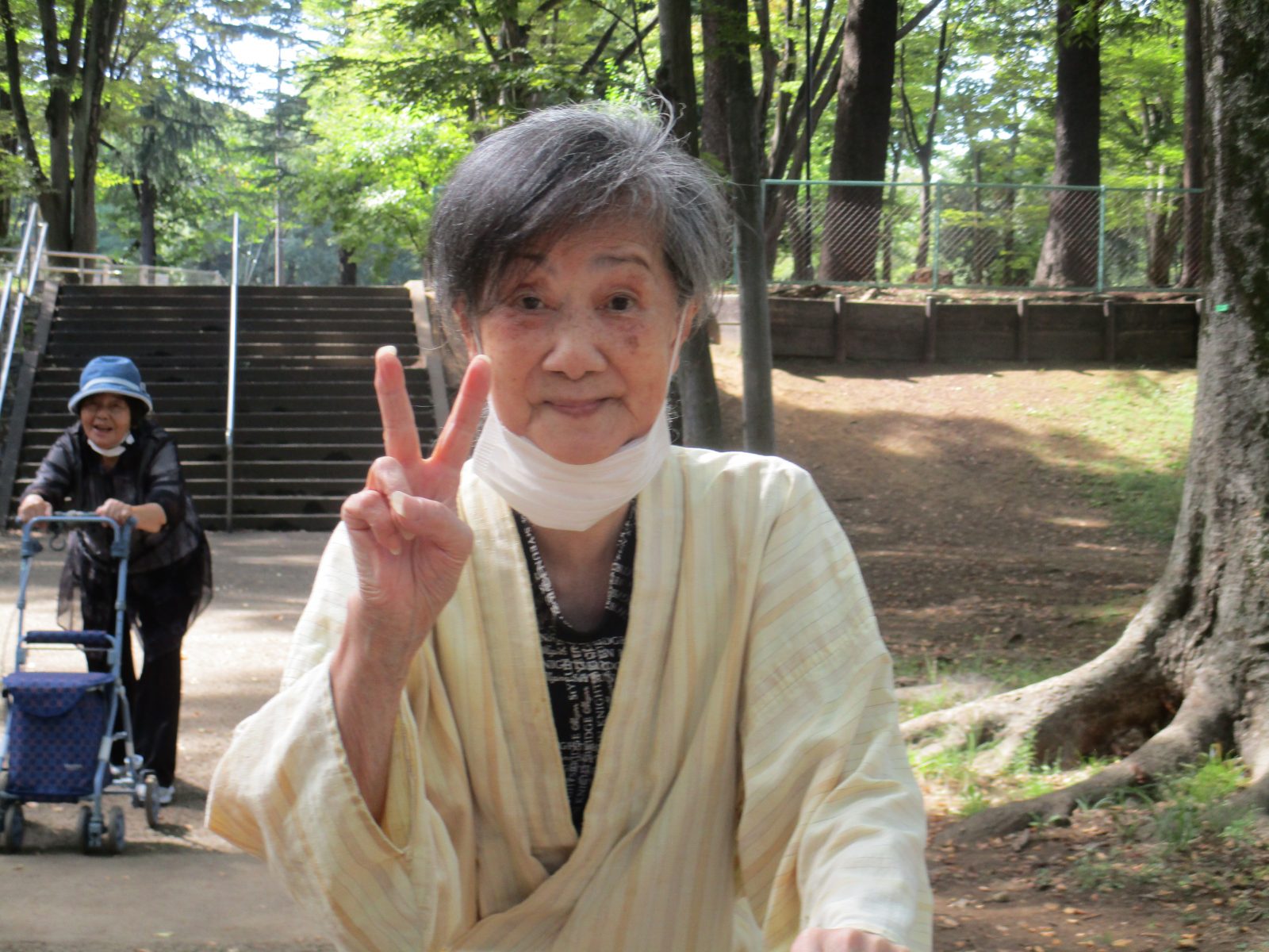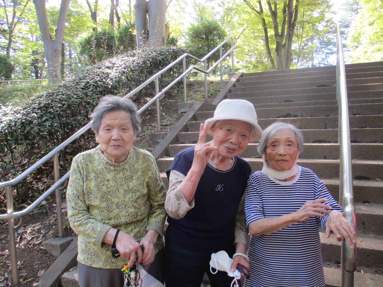 城北公園での歩行訓練は、ほっと・氷川台デイサービスの最大の特徴ですが、ついにベストシーズンに入りました。毎回皆様この表情です。